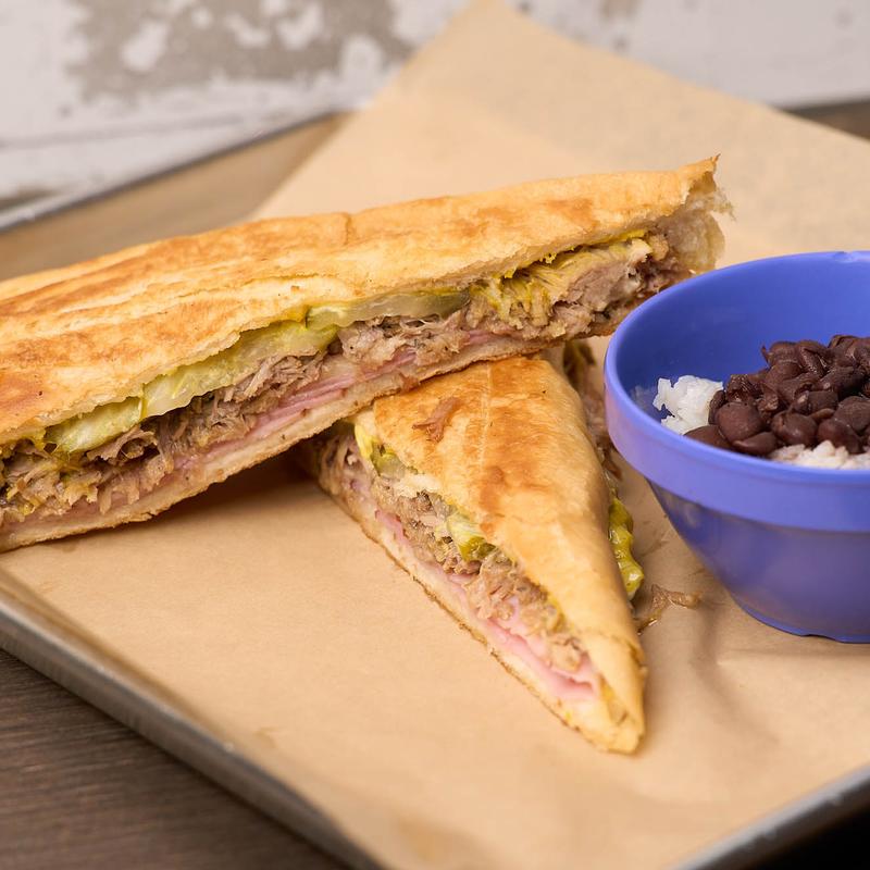 House Roasted Mojo Pork & Grilled Onions pressed between real Cuban Bread.